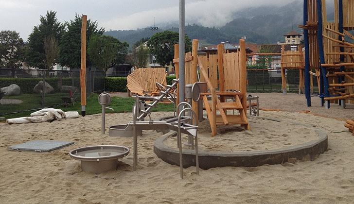 La pavimentazione antitrauma in sabbia è certificata per cadute fino a 3 metri di altezza, con una profondità minima di 400 mm.